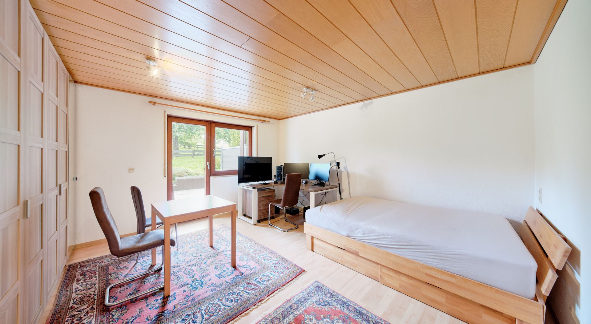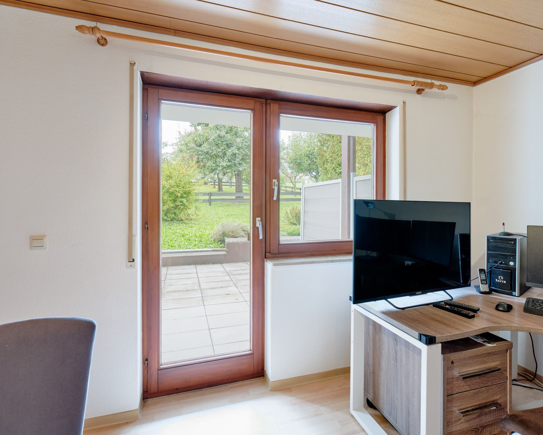 Nicht nur der moderne Grundriss mit seiner offenen Raumgestaltung überzeugt, sondern auch die weitläufige, teilüberdachte Westterrasse. In der warmen Jahreszeit wird sie zu einem erweiterten Wohnzimmer unter freiem Himmel. Die angrenzenden Streuobstwiesen sowie der Sichtschutz zu den Nachbarn bieten Ihnen eine angenehme Privatsphäre. Genießen Sie hier den wunderschönen Blick ins Grüne und die Sonne bis zum Untergang.