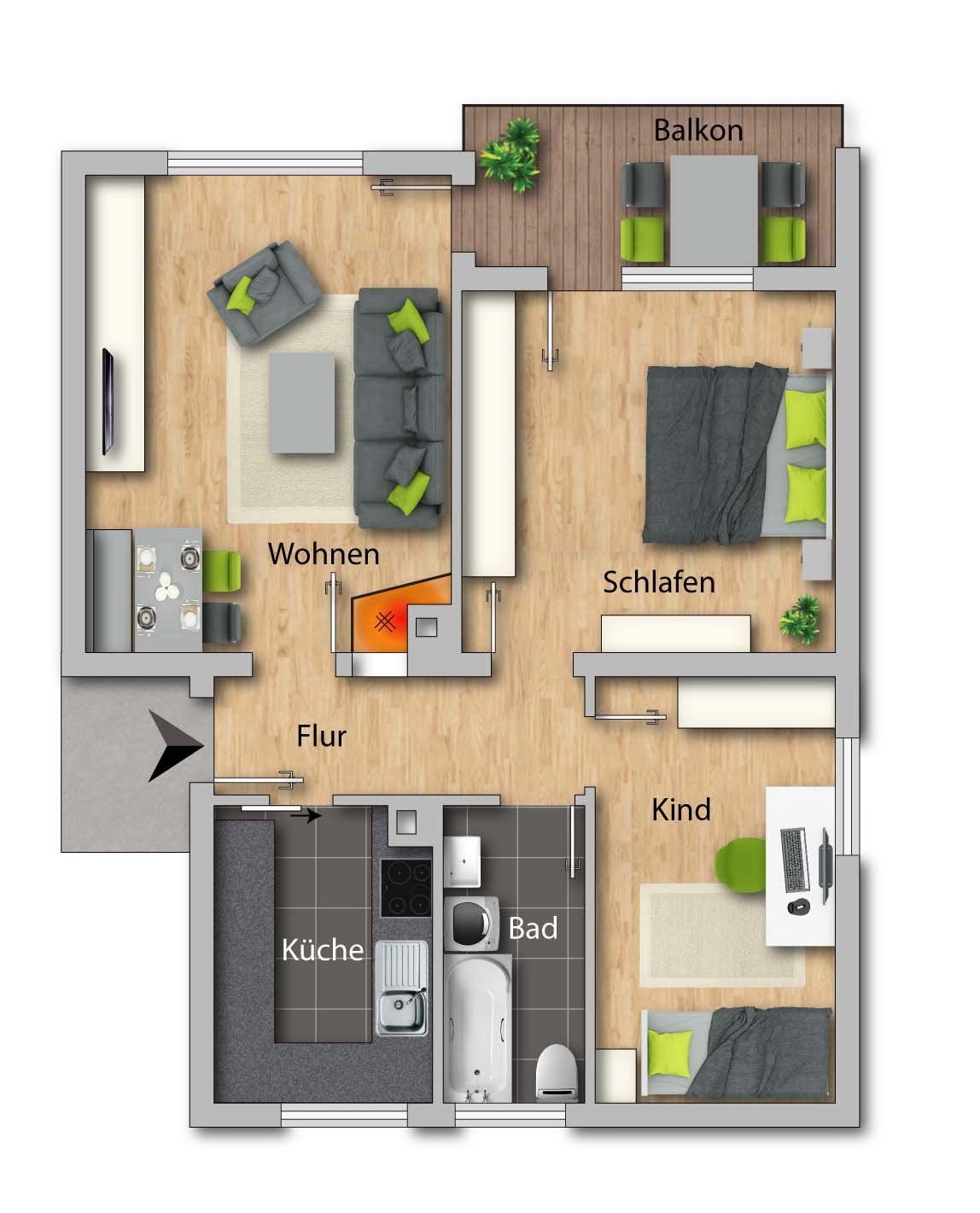 Helle 3-Zi.-ETW mit Südwestbalkon in Zentrumsnähe