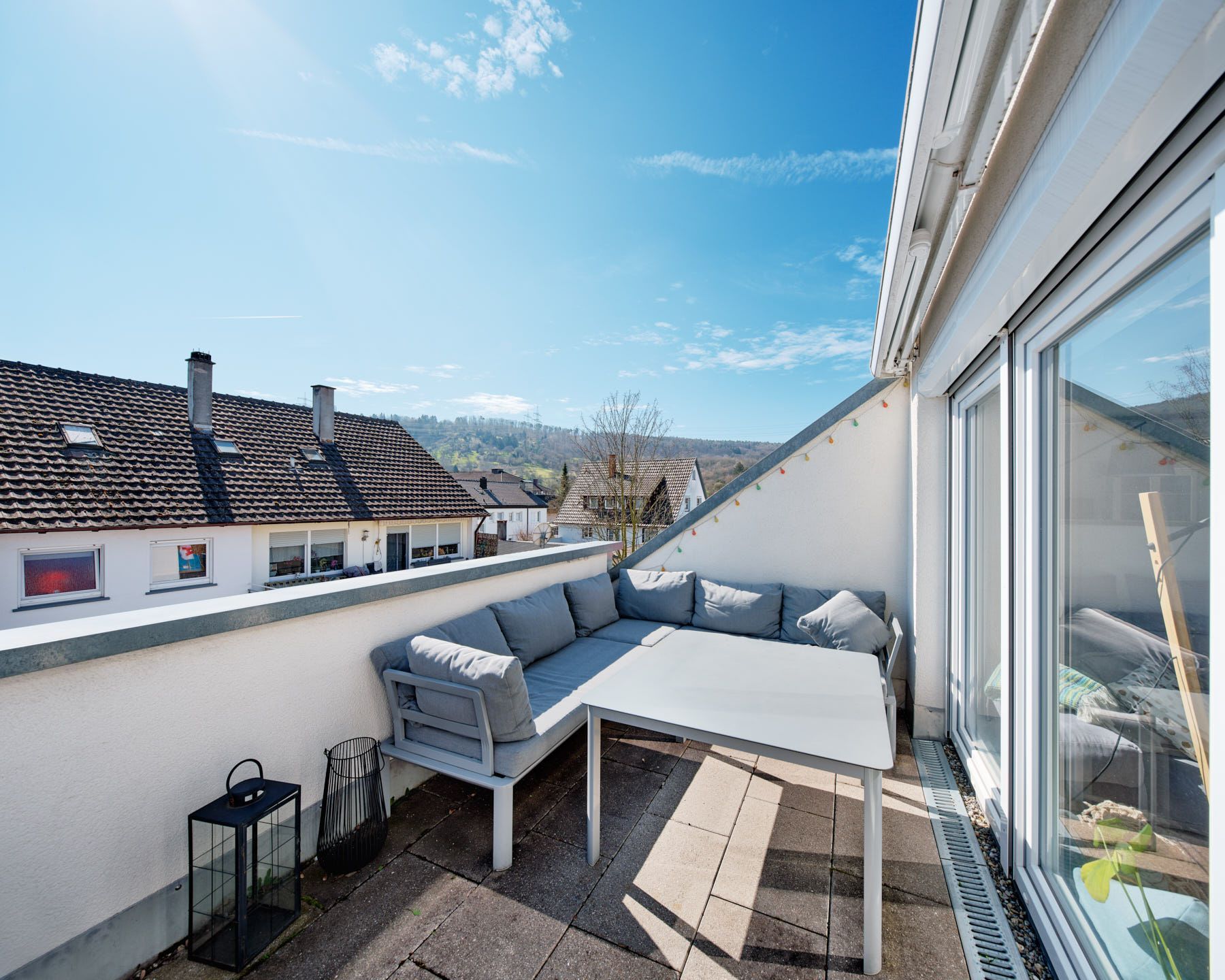 Auch die Entspannung im Freien kommt nicht zu kurz. Hierfür grenzt eine nach Süden ausgerichtete Loggia an das Wohnzimmer.