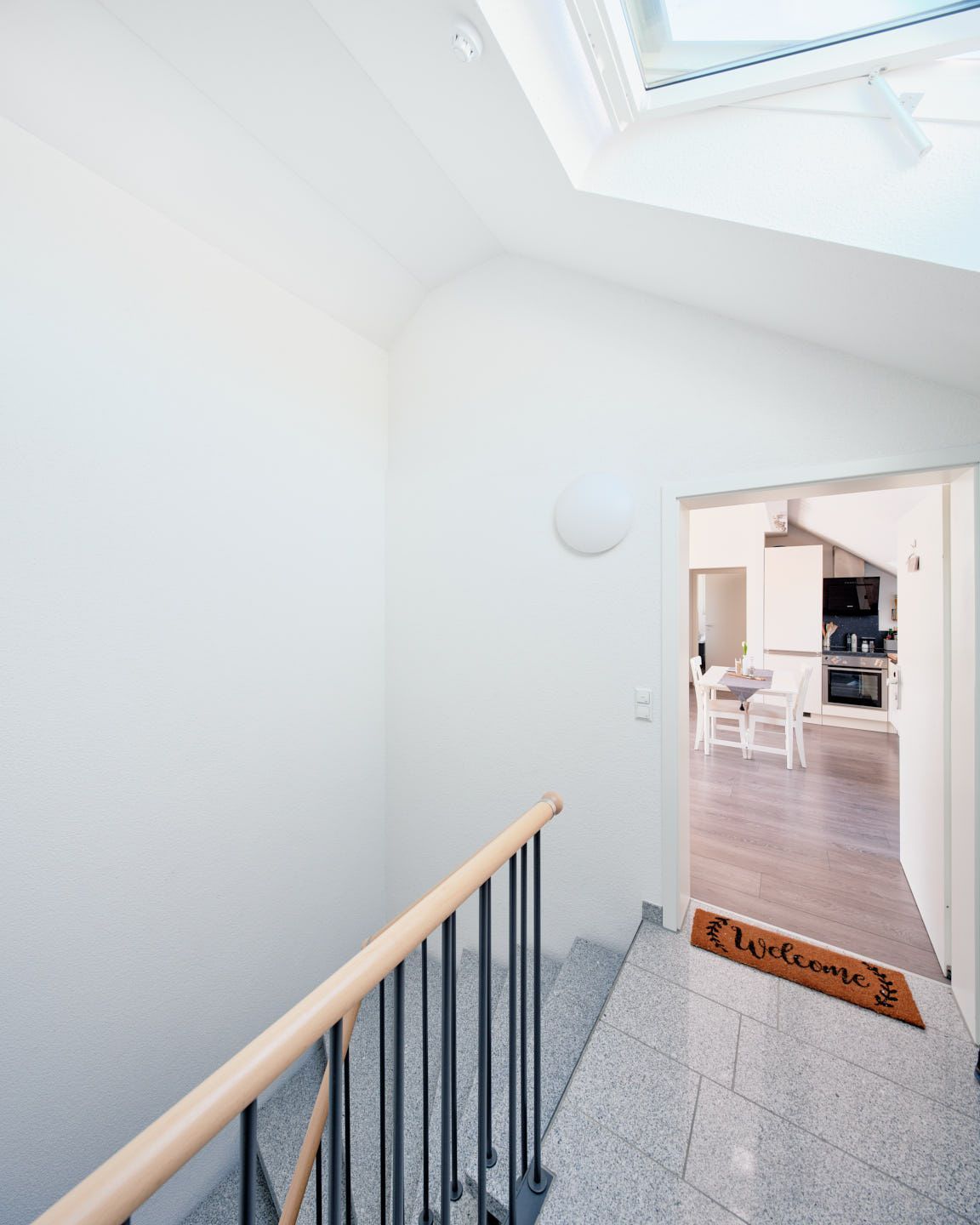 Die neuwertige Dachgeschosswohnung erreichen Sie über ein hochwertiges Treppenhaus. Unempfindliche Granitstufen sowie das Edelstahlgeländer sorgen für eine zeitlose Eleganz.
