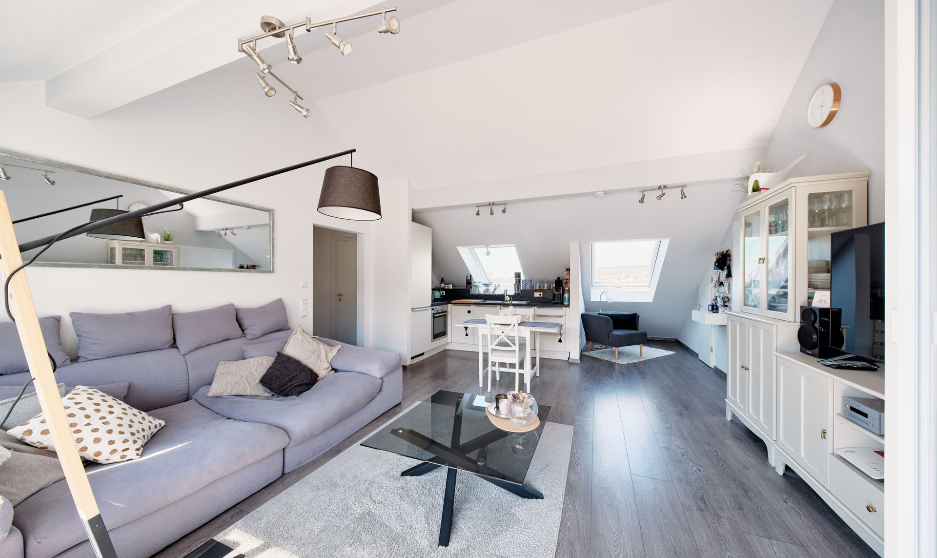 Stilvoll wurde in den Wohnräumen durchgängig ein schicker Laminatboden verlegt.
