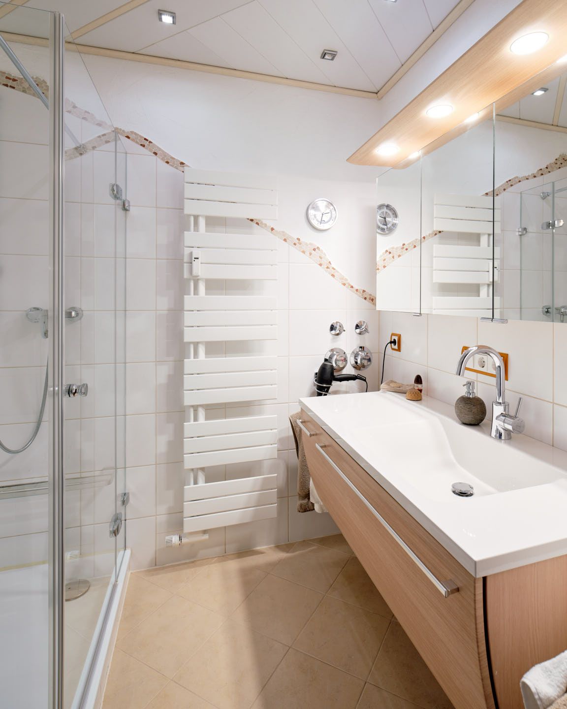 Im geräumigen Schlafzimmer finden Sie ausreichend Fläche zum Stellen eines großen Kleider- oder Eckschranks. In zeitloser Eleganz erstrahlen das Duschbad und das separate WC. Beides wurde geschmackvoll saniert.