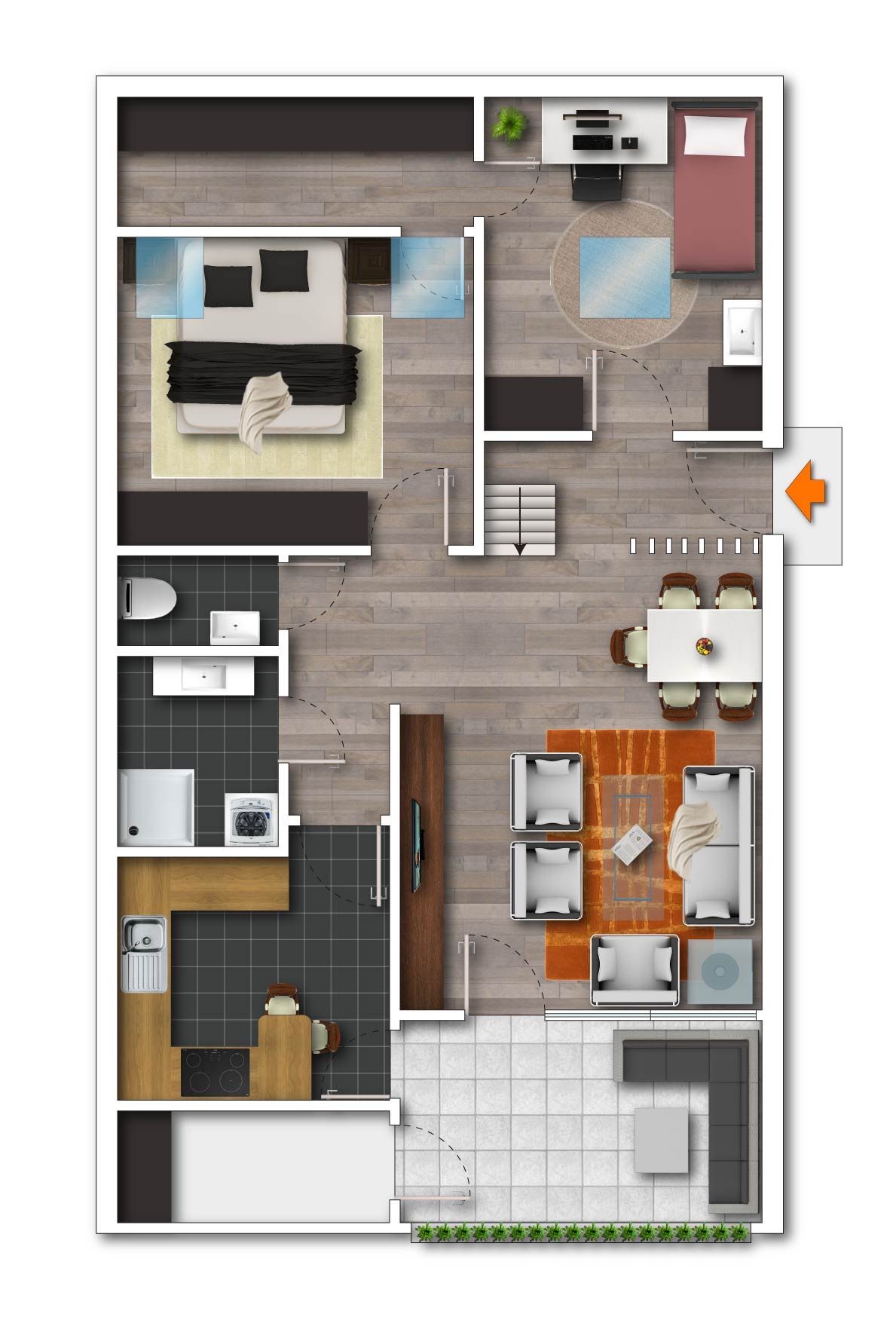 Der durchdachte Grundriss, die kleine Hausgemeinschaft mit nur fünf Parteien sowie die großzügigen Abstände zur Nachbarbebauung sorgen für ein angenehmes und privates Wohnambiente.