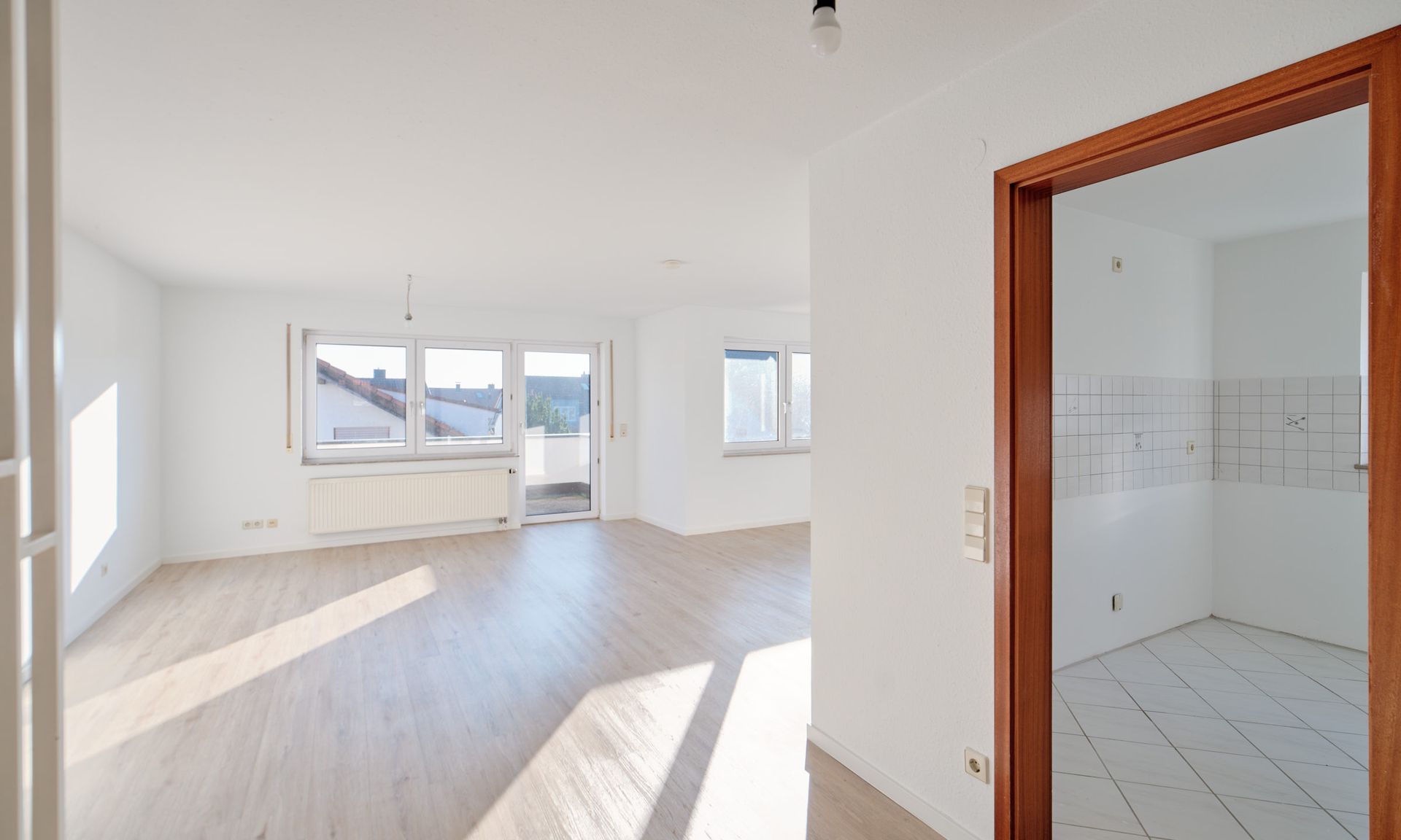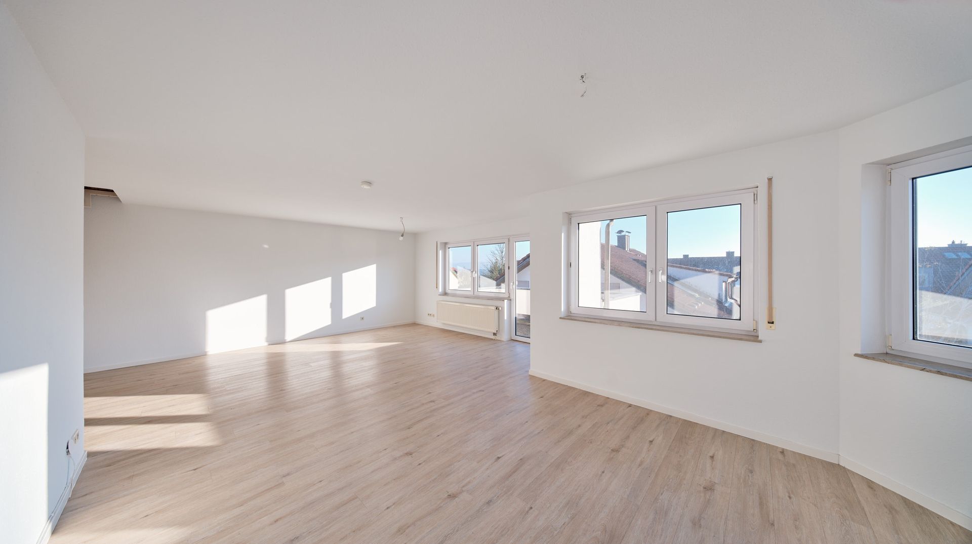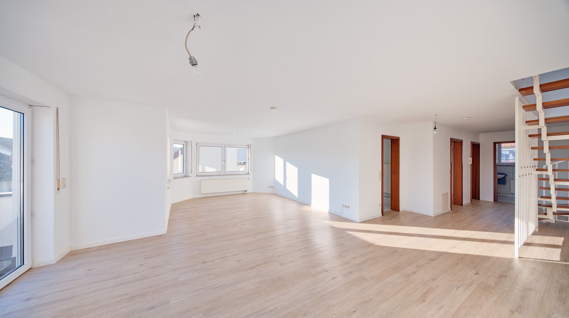 Die Räume verfügen teilweise über hohe Decken und einen durchgängig verlegten wunderschönen Vinylboden. Beides vermittelt zusätzliche optische Weite.