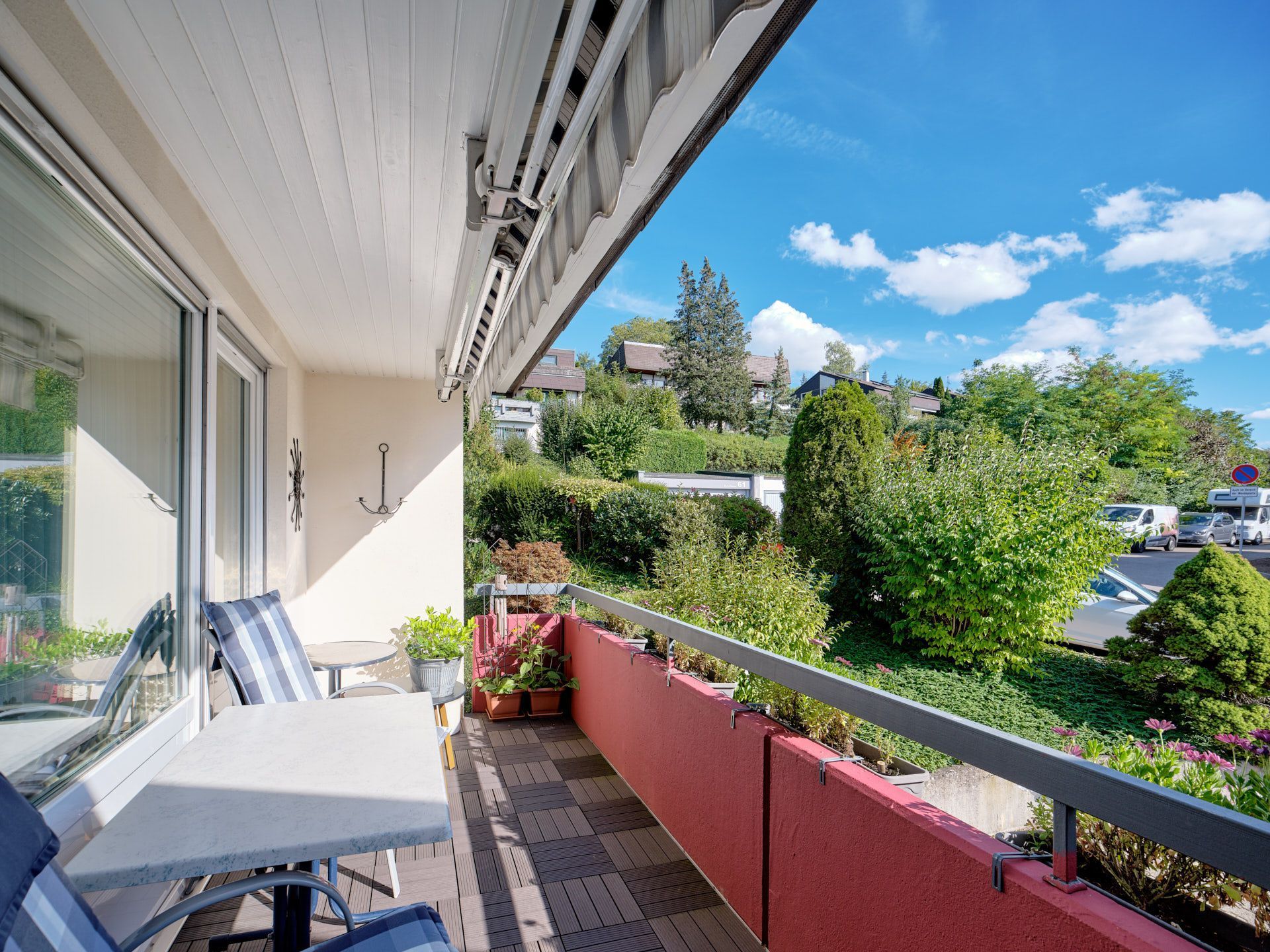 Des Weiteren befindet sich im EG ein schöner überdachter Südbalkon, der vom Wohnbereich aus erreichbar ist und bis zum späten Nachmittag ein Relaxen in der Sonne ermöglicht. Am Hauseingang wurde eine großzügige Terrasse angelegt, auf der vormittags und abends die Sonne genossen werden kann. Den neuen Eigentümern steht somit ein weiteres Freiluftwohnzimmer und maximale Flexibilität zur Verfügung.