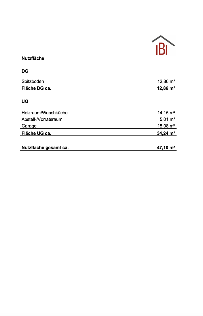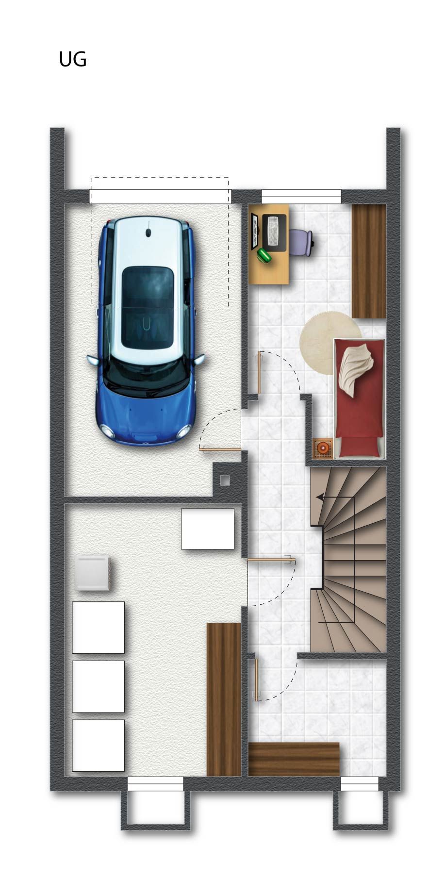 Das UG teilt sich auf in ein Büro oder Gästezimmer, einen Abstellraum, einen Heiz-/Waschraum und eine Garage. Die Garage verfügt über ein elektrisches Tor und einen direkten Zugang zum Haus, sodass alle Einkäufe trockenen Fußes ins Haus transportiert werden können. Vor der Garage kann im Außenbereich ein zweites Auto geparkt werden.