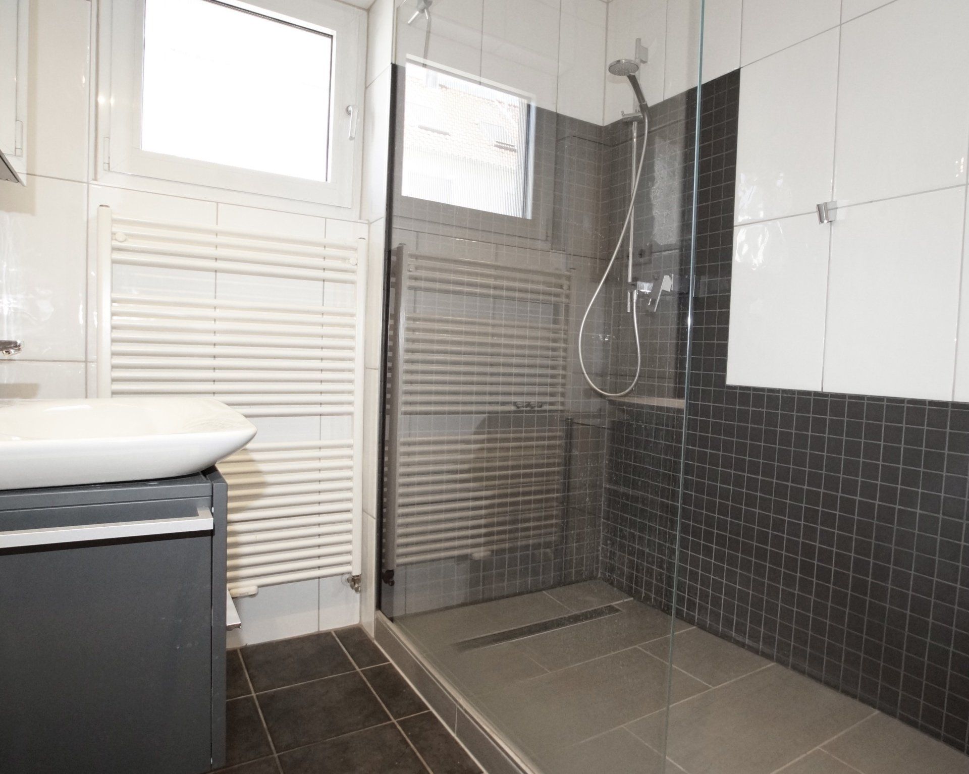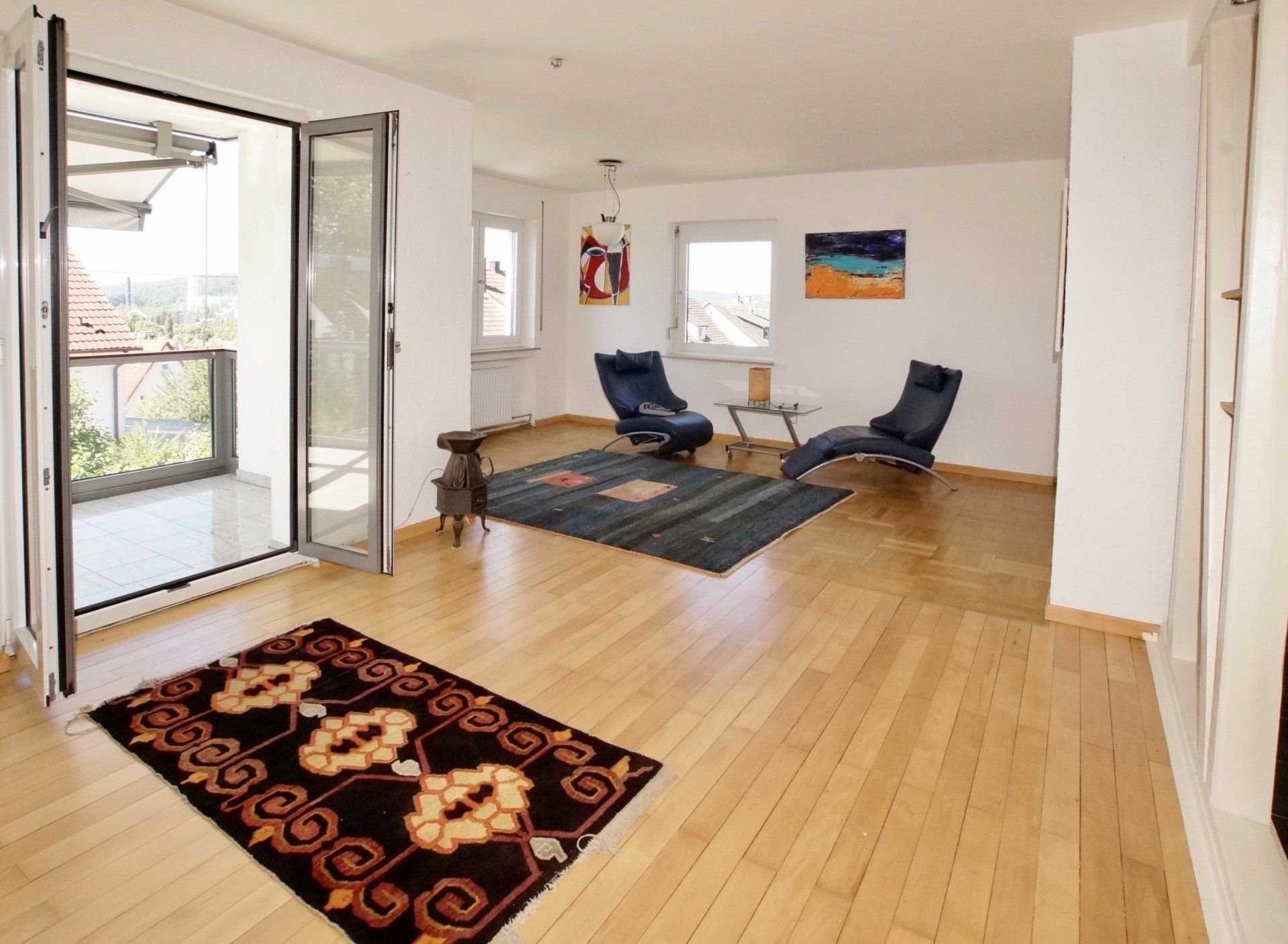 Hier bietet sich die seltene Gelegenheit, in einem sehr schönen Zweifamilienhaus zu wohnen. Diese nicht alltägliche 3-Zi.-Wohnung befindet sich im Hochparterre und versprüht ihren Charme. Nicht nur die lichtdurchflutete Wohnküche mit moderner EBK ist ein Highlight, sondern auch das großzügige Wohnzimmer mit Sichtgebälk. Des Weiteren stehen ein schickes Duschbad mit Dusche, Waschbecken, Waschbeckenunterschrank und Handtuchheizkörper, ein geräumiges Schlafzimmer, ein Büro und ein separates WC zur Verfügung. Ebenfalls trägt zur Entspannung der überdachte Südwestbalkon mit neuwertiger Markise, Granitboden, Glasgeländer und dem herrlichen Ausblick über Altbach bis Deizisau bei.