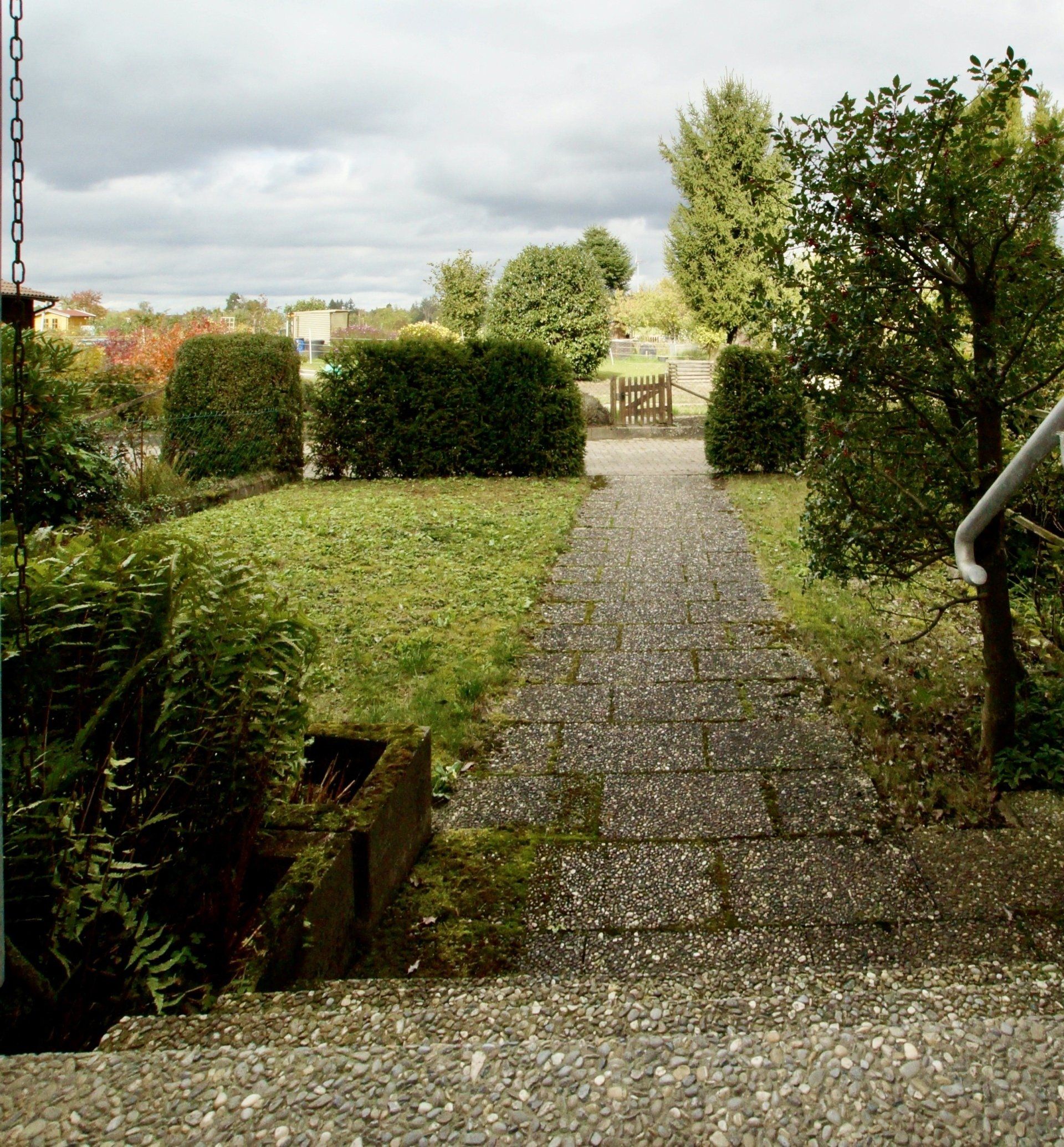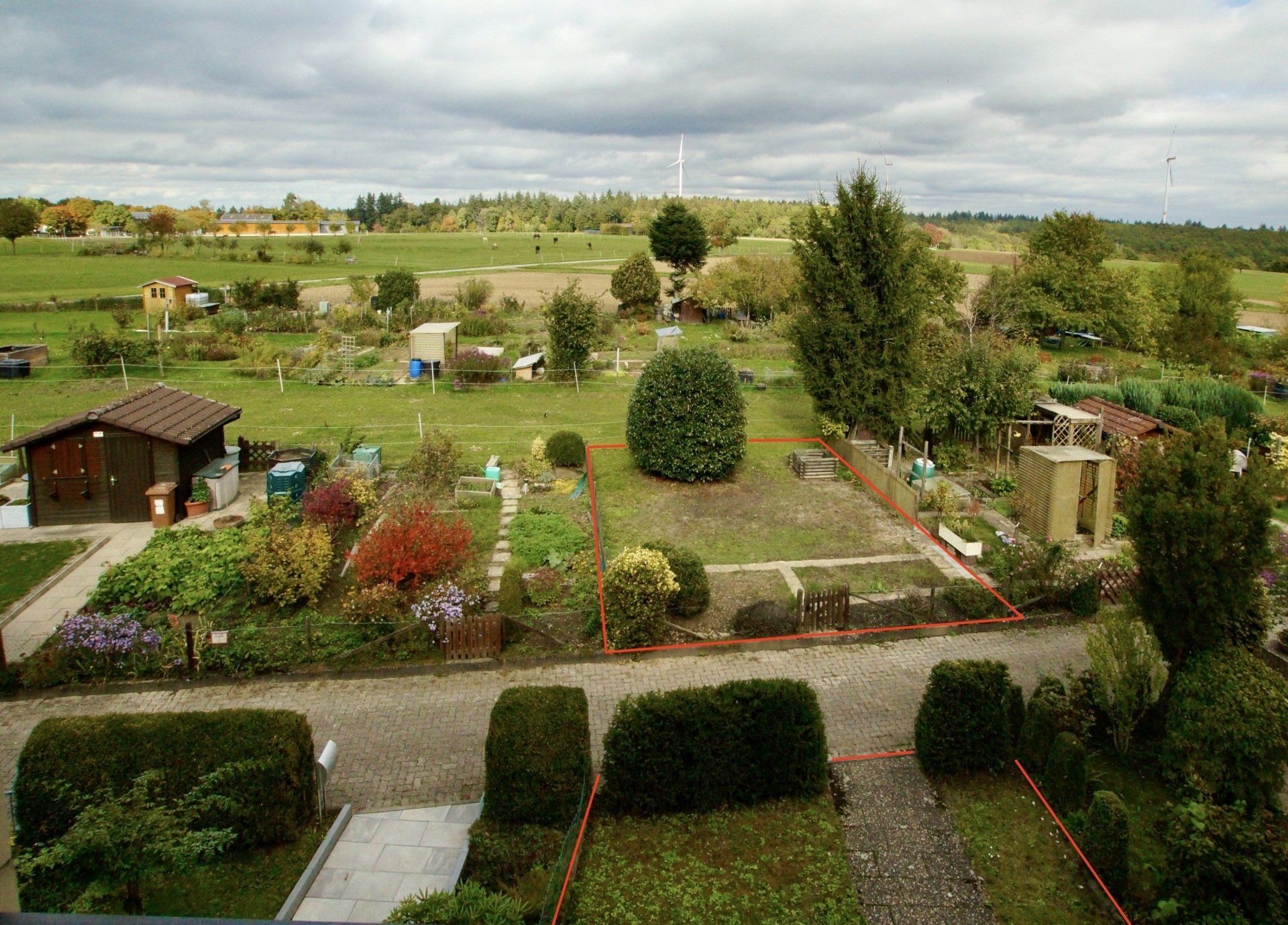 Gegenüber des Hauszugangs befindet sich eine weitere Grundstücksfläche, auf der sich bspw. wunderbar Obst- und Gemüse zur Eigenversorgung anbauen oder ein Spielplatz einrichten lässt.