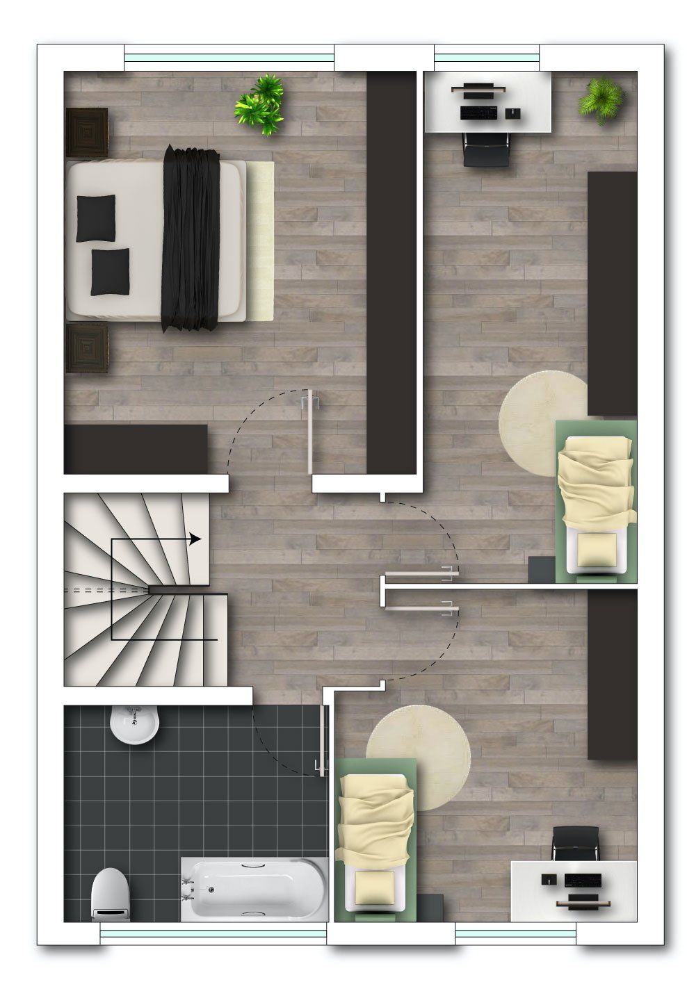Das Dachgeschoss bietet zusätzliche Flexibilität bspw. als Reich für größere Kinder, Gäste, Hobbys oder berufliche Tätigkeiten. Denkbar wäre auch die Unterbringung eines Elternteils oder Au-pairs.