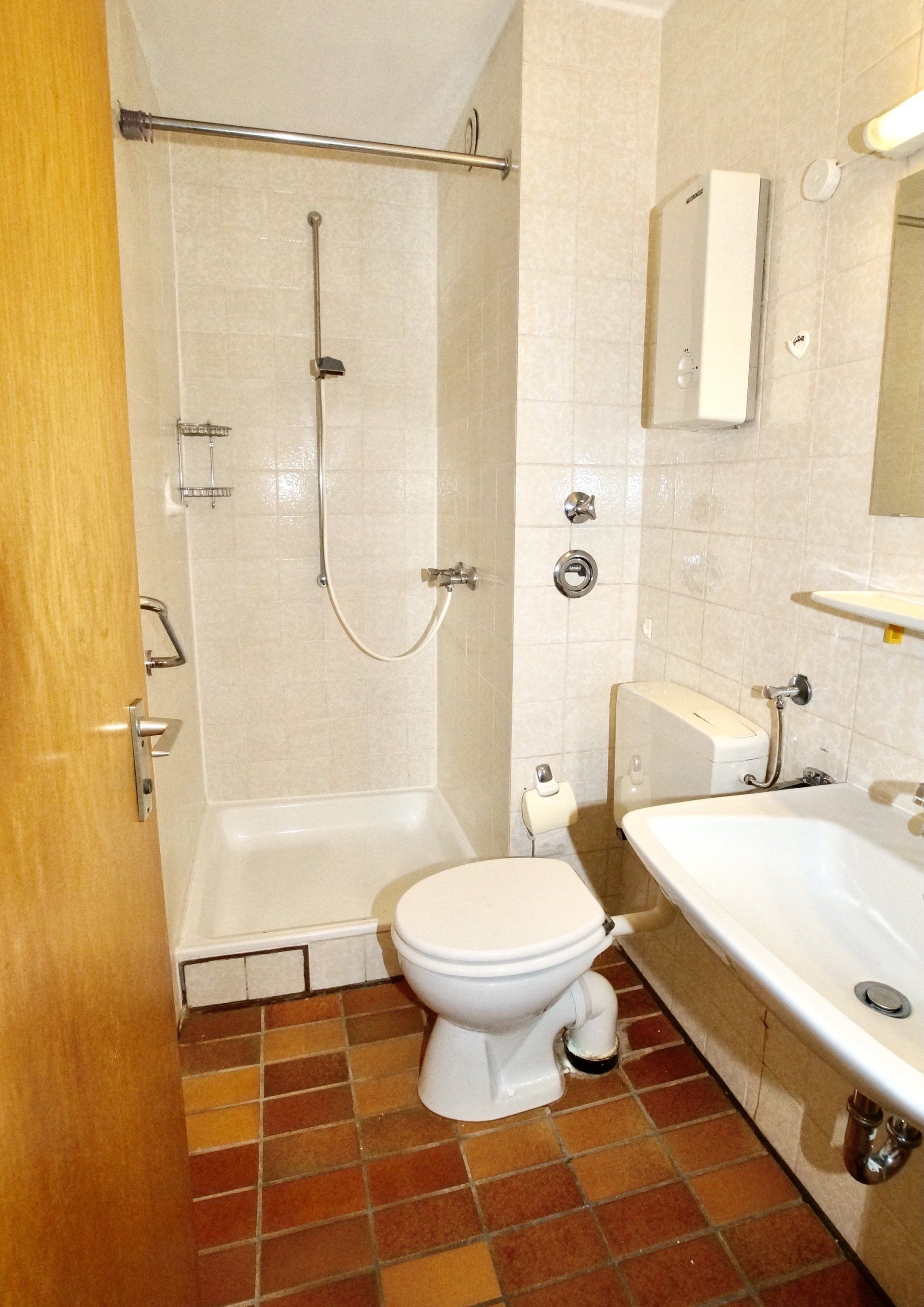 - Gefliestes Duschbad mit Dusche, WC und Waschbecken