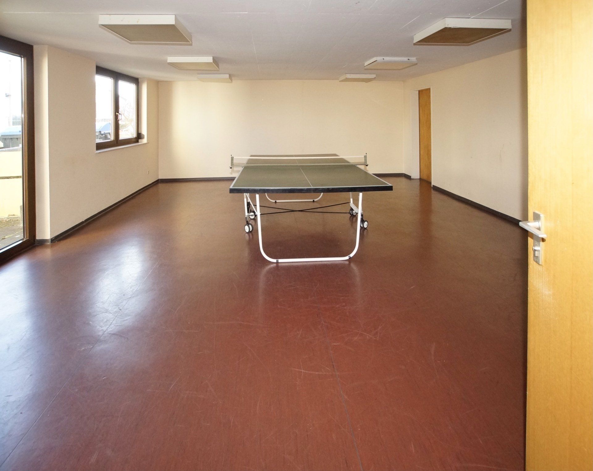 Im Untergeschoss steht allen Bewohnern ein großer Raum mit einer Tischtennisplatte zur Verfügung.