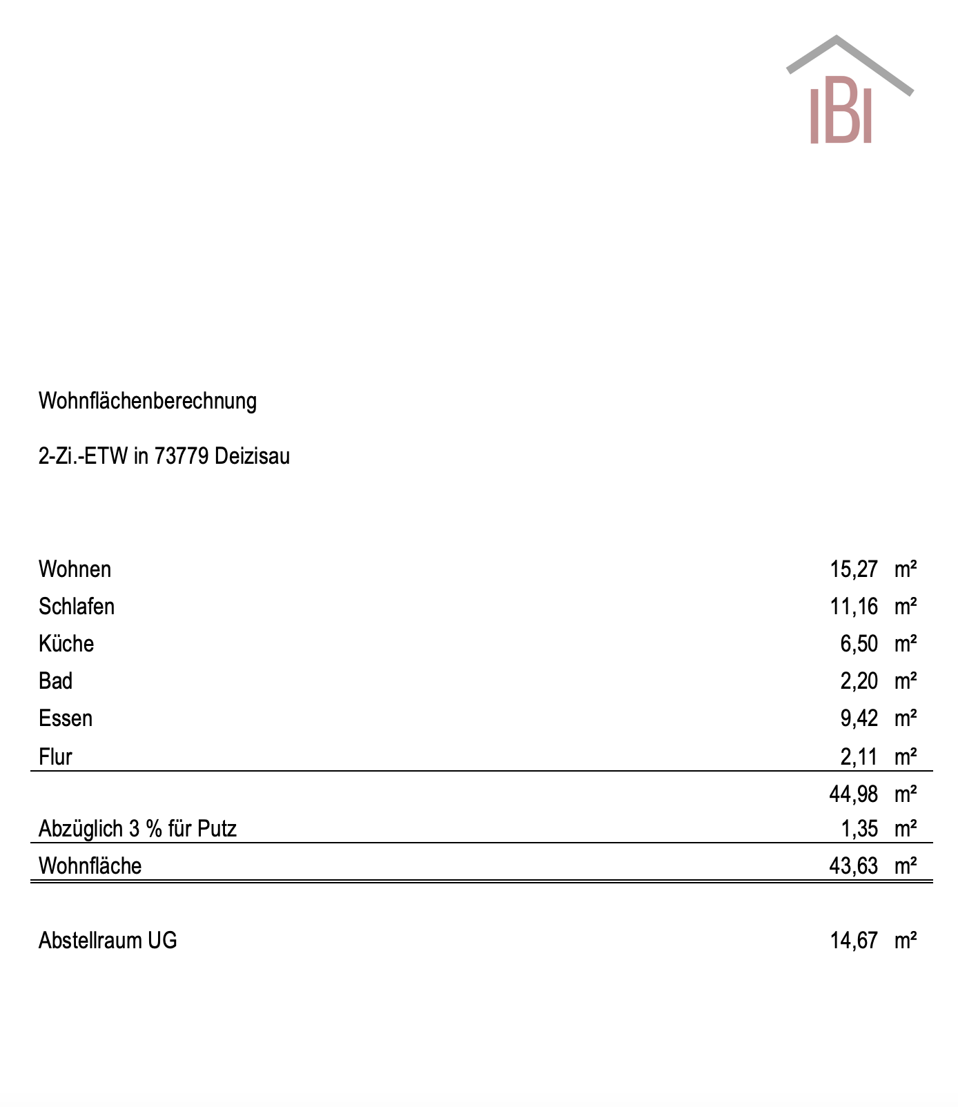 Die Wohnung liegt in ruhiger Halbhöhenlage von Deizisau. Das Zentrum mit Geschäften des täglichen Bedarfs, Restaurants, Banken und Friseuren ist ca. 700 m entfernt.