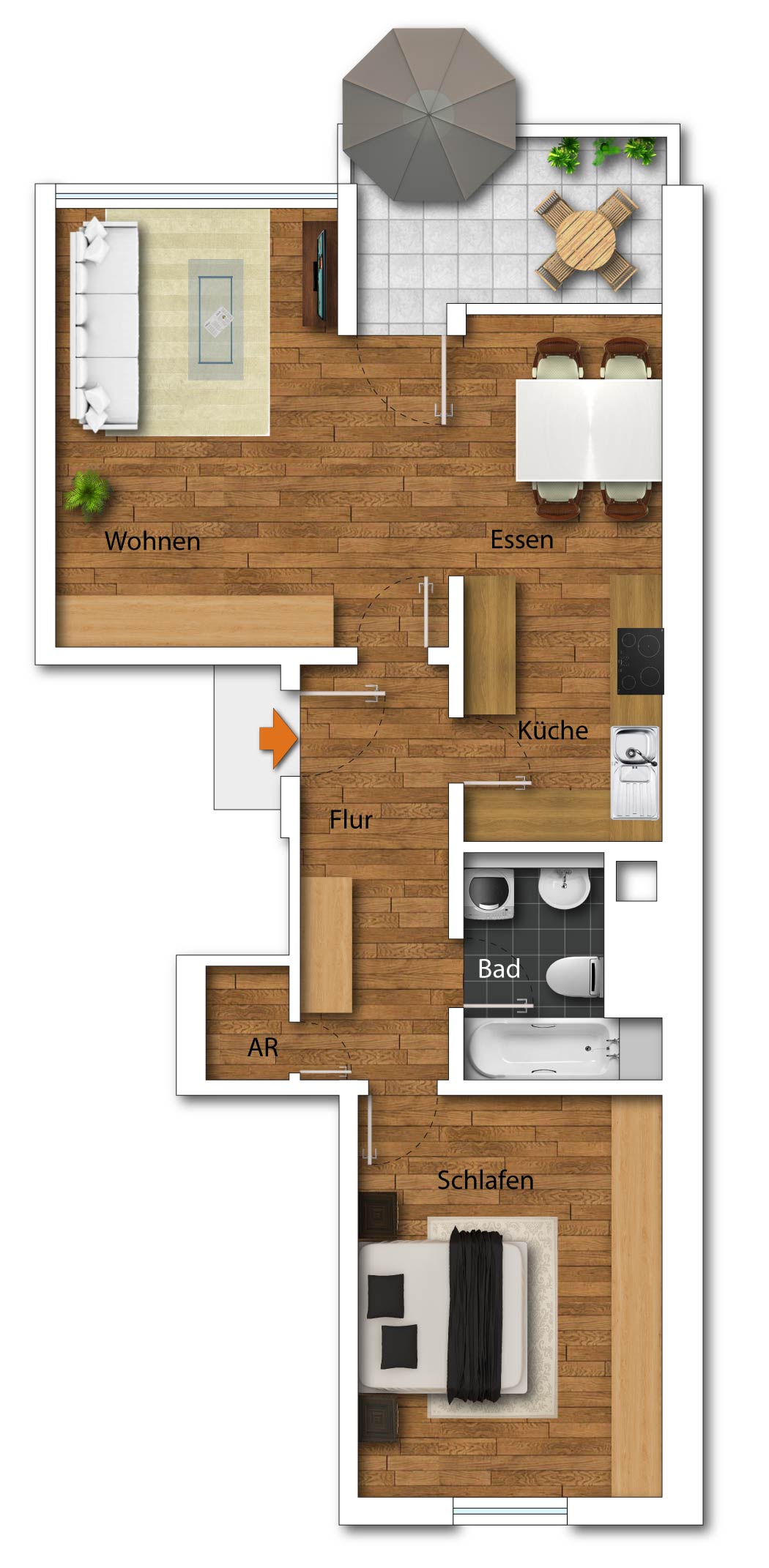 Erholsame Stunden, eine wunderschöne Fernsicht und ausreichend Platz zum Grillen oder Sonnen bietet der überdachte Westbalkon. Des Weiteren steht ein geräumiges Schlafzimmer, ein einladender Eingangsbereich und ein Abstellraum innerhalb der Wohnung zur Verfügung. Das Bad mit WC, Waschbecken, Badewanne und Waschmaschinenstellplatz wurde dieses Jahr neu gefliest, ebenso der Boden in der Küche mit großformatigen Fliesen. Im übrigen Wohnbereich ist ein schicker Vinylboden in Eichenoptik neu verlegt worden.