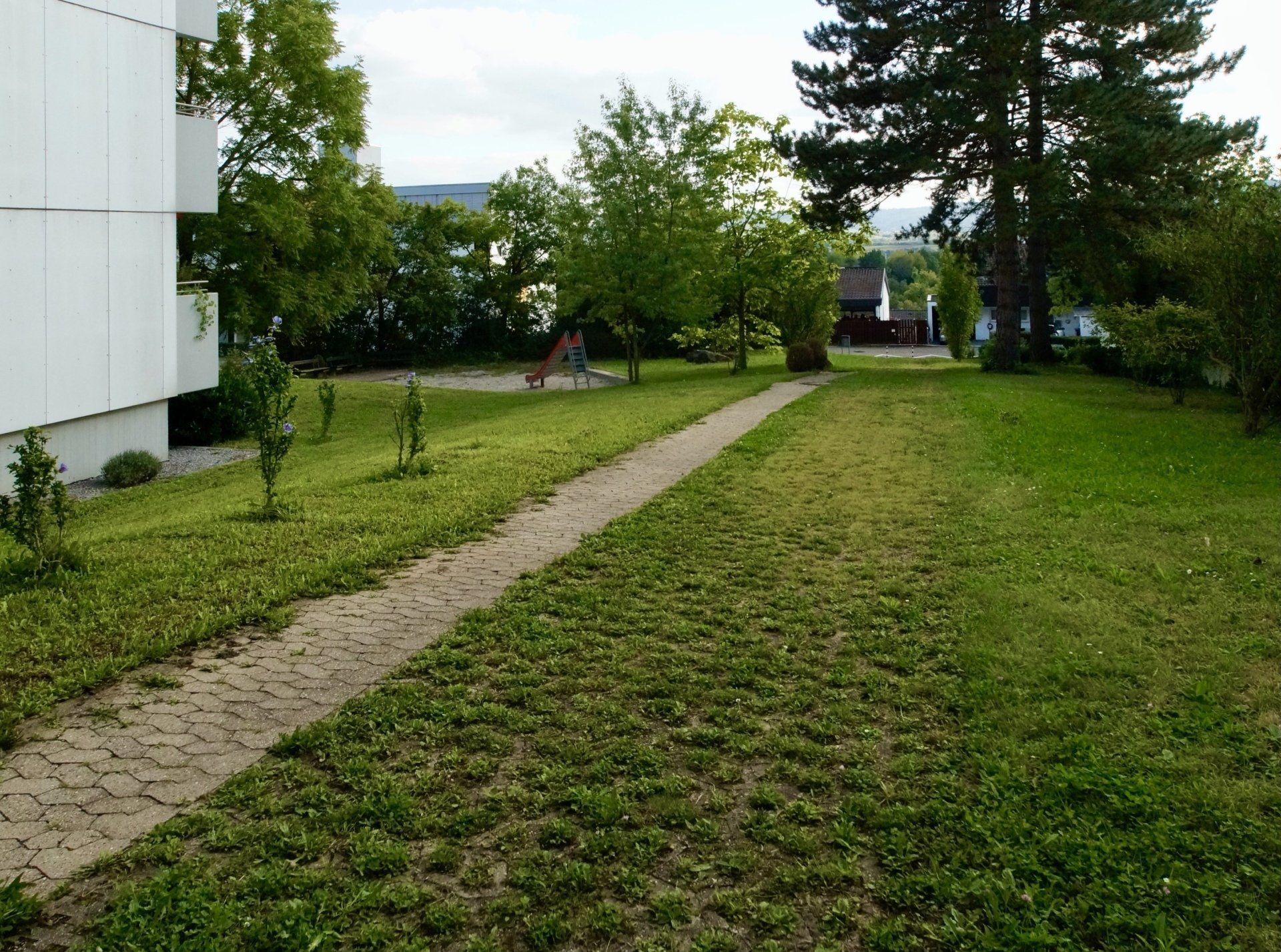 Dieses Mehrfamilienhaus ist von einer großzügigen, grünen Außenanlage mit Spielplatz umgeben, die von allen Bewohnern genutzt werden kann.