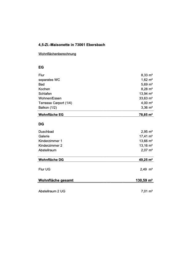 Sie lieben die Ruhe und möchten wie in einem Einfamilienhaus wohnen mit viel Platz für die ganze Familie und einem kleinen Garten? All das bietet Ihnen diese 4,5-Zi.-Maisonette-Wohnung und beeindruckt zudem mit einer lichtdurchfluteten Raumkonzeption. Weitere Highlights sind die große Galerie im DG, die wunderschöne Aussicht auf Ebersbach sowie die ideale Ausrichtung nach Süden und Westen.